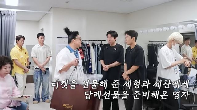 영상에선 이영자가 양세형과 양세찬 형제의 공연장을 찾은 모습이 담겼다. 공연 전 대기실을 찾은 이영자는 공연 티켓을 선물해 준 양세형과 양세찬을 위해 답례선물을 준비해서 선물했다. “맘에 들었으면 좋겠다”라며 형제에게 옷 선물을 한 이영자. 양세형과 양세찬은 이영자가 선물한 옷을 걸쳐보고는 “지금도 잘 어울린다. 이러고 공연 올라갈까요?”라고 고마움을 드러냈다. 양세형은 신이 났는지 즉석에서 랩을 하며 댄스까지 선보이며 웃음을 자아냈다.