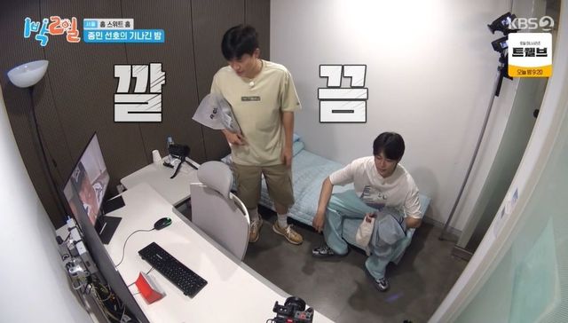 KBS 앞에서 펼쳐지는 당일 퇴근 최종 결정전. 멤버들 눈 앞엔 하루 종일 들고 다니던 게임판이 펼쳐져 있었다. 멤버들이 직접 말이 되어 주사위를 굴리는 미션이었다. 미션 설명을 듣던 도중 딘딘에게 전화가 왔고, 멤버들은 “흐름이 가다가 끊겼다”라고 투덜거렸다. 이미 씻은 딘딘은 “TV 보듯 보면 안 되냐”라고 했고, 이준은 “‘오징어 게임’ VIP냐. 수치스럽다”라고 불만을 토로했다. 그러나 딘딘은 “너무 재밌어”라며 흥미진진하게 게임을 지켜봤다.