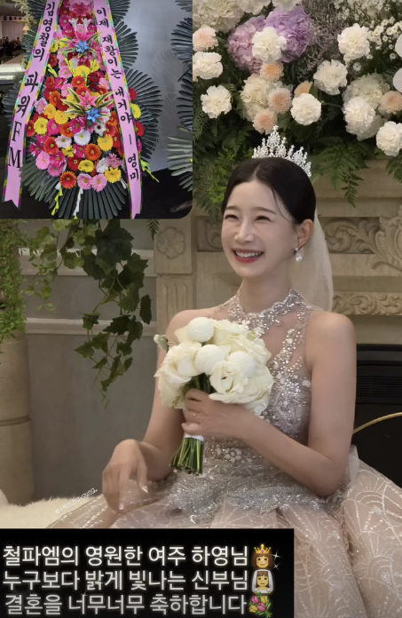 SBS 라디오 ‘김영철의 파워 FM’ 측은 “철파엠의 영원한 여주 하영님, 누구보다 밝게 빛나는 신부님 결혼을 너무너무 축하합니다” “이제 재황이는 내거야 –영미” 등 재치있는 화환 문구로 김하영을 축하했다.