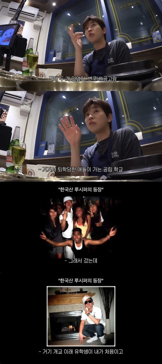 그는 "근데 한국 성적이 안 되다보니까 받아주는 학교가 없었다. 그나마 두 개가 있었는데, 하나는 벤쿠버 공고였고, 다른 하나는 거기서 퇴학당한 애들이 가는 공립학교였다"고 설명해 웃음을 줬다.