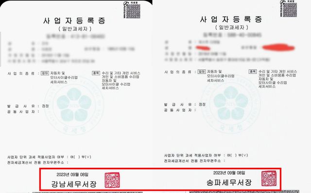 눈길을 끄는 부분은, 세무서가 다른 지점이었음에도 사업자등록증의 인감 모양이 A씨가 받은 것과 동일했다는 점이다. 이에 일각에선 동일범의 소행일 가능성도 있지 않느냐는 의혹이 제기된다.