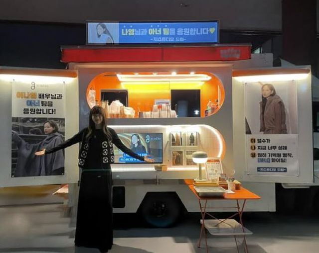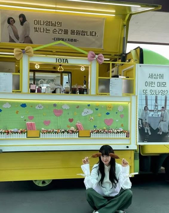 공개된 사진 속에는 커피차 앞에서 포즈를 취하고 있는 이나영의 모습이 담겨있다. 커피차에는 ‘이나영 님의 빛나는 순간은 응원합니다’, ‘세상에 이런 미모 또 있나요?’, ‘나영 님과 아너 팀을 응원합니다’, ‘이럴수가 지금 너무 설레 영원히 기억될 명작’ 등의 응원 메시지가 담겼다.