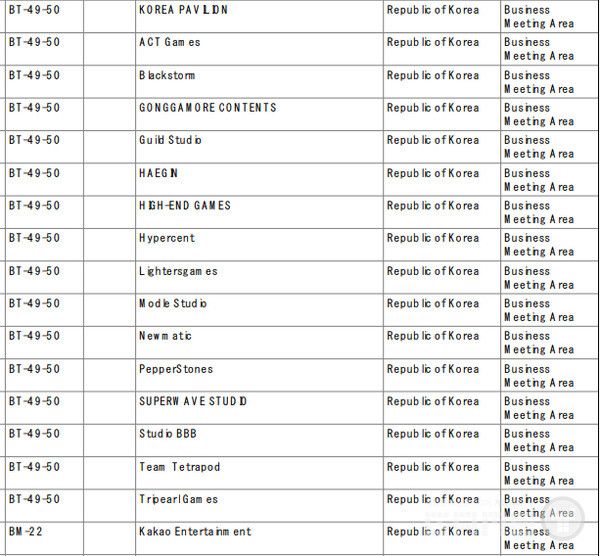 한국관 04-C02 부스는 이번 전시회에서 가장 큰 규모의 한국 업체 집결지가 될 전망이다. ACT Games, 블랙스톰, 공감오르 콘텐츠, 길드 스튜디오, 해긴, 하이엔드 게임즈, 하이퍼센트, 라이터스게임즈, 모들 스튜디오, 뉴매틱, 페퍼스톤즈, 슈퍼웨이브 스튜디오, 스튜디오 BBB, 팀 테트라포드, 트라이펄 게임즈 등 15개사가 한자리에 모여 한국 게임의 다양성과 창의성을 집중적으로 어필할 예정이다.