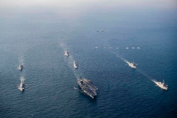 지난 2024년 6월 1차 훈련 당시에는 미 항모 시어도어 루스벨트호(CVN-71)가, 2024년 11월 2차 훈련에서는 조지워싱턴호(CVN-73)가 참가한 바 있다. 지금껏 세차례 훈련 가운데 미 항공모함이 참가하지 않은 것은 이번이 처음이다.