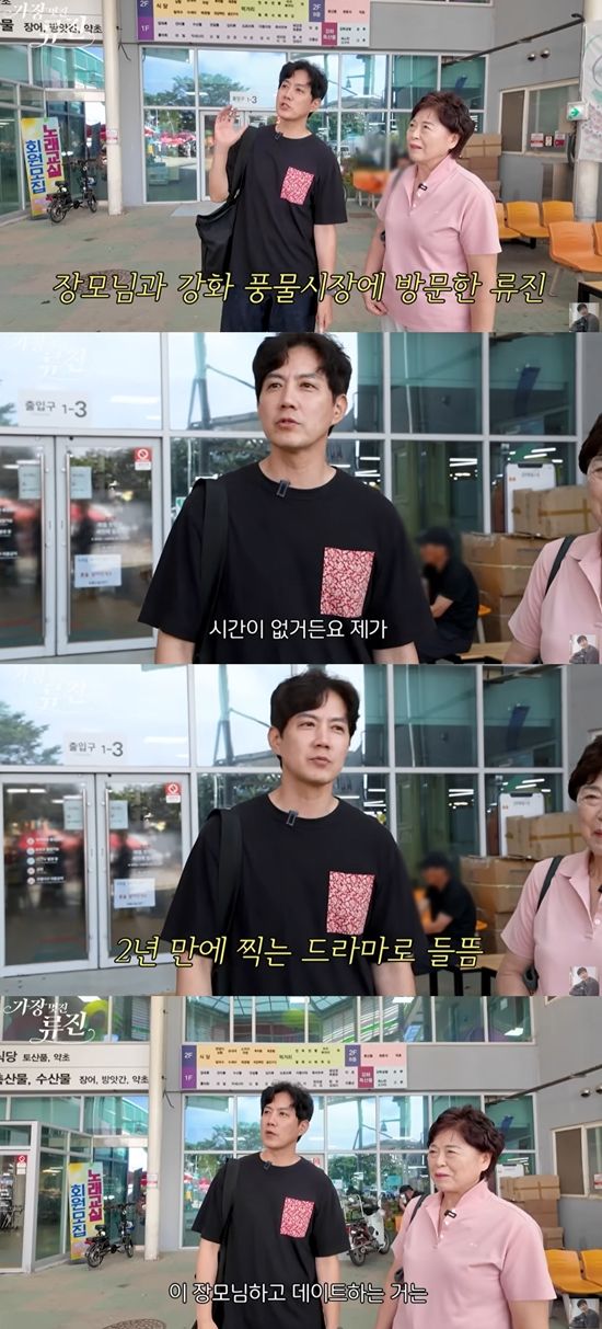 이날 류진은 "여기 강화도다"라며 "(사실) 제가 지금 드라마 촬영으로 이렇게 시장 다니고 이럴 시간이 없다"라고 고백했다.