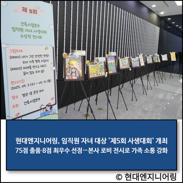 현대엔지니어링 관계자는 "이 사생대회를 통해 임직원과 가족이 서로 소통하며 회사에 대한 자긍심과 소속감을 느낄 수 있는 기회가 되길 바란다"라며 "앞으로도 가족이 함께 공감하고 어울릴 수 있는 다양한 프로그램을 마련해 나가겠다"라고 전했다.