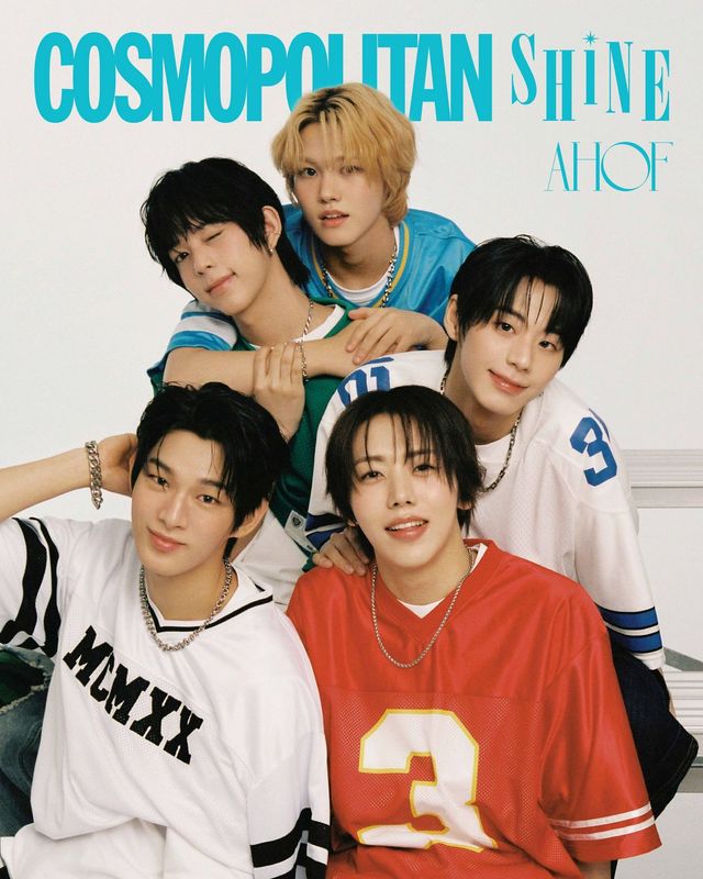보이그룹 리얼리티 서바이벌 프로그램 〈유니버스 리그〉로 화려하게 데뷔전을 치룬 아홉(AHOF)이 〈코스모폴리탄 샤인〉을 찾았다. 아홉은 최근 미니 1집 〈WHO WE ARE〉 활동을 마치며 대중에게 존재감을 확실히 각인 시켰다. 이에 대해 제이엘은 “첫 활동에 대해 걱정이 많았는데 잘 마무리한 것 같아 뿌듯했고 자신감도 얻었습니다”라며 첫 활동을 마친 소감을 전했다. 리더 스티븐 역시 아홉과 함께한 모든 순간이 평생 기억에 남을 것 같다며 데뷔 부대를 회상했다. “첫 타이틀곡을 들었을 때, 첫 데뷔 무대에 섰을 때… 아홉과 함께한 모든 첫 번째 순간들이 기억에 많이 남아요.” 첫 패션 화보 촬영에 대한 소감도 물었다. 박주원은 “제가 앞머리를 오픈하면 심장이 뛰는 편인데, 긴장하지 않게 모든 스태프분들이 친절하게 알려주셔서 잘해낼 수 있었어요.” 장슈아이보는 “스포츠 스타 콘셉트로 촬영했는데 정말 멋있게 나왓어요. 준비해주신 분들에게 진짜 감사드립니다”라며 미소 지었다.