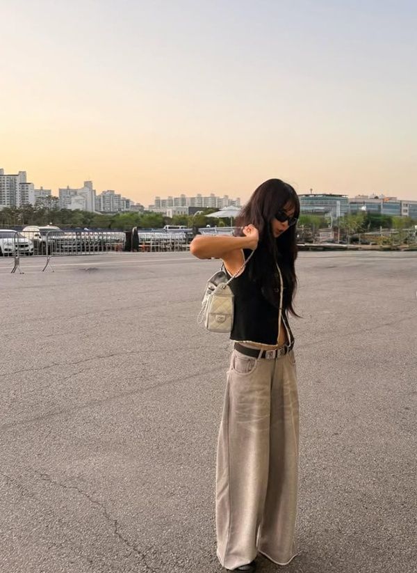 또 다른 사진에서는 제니 특유의 힙하면서도 감각적인 스타일이 돋보인다. 블랙 크롭 베스트에 루즈핏의 새틴 팬츠, 그리고 은은한 광택이 감도는 실버 백을 매치해 트렌디한 스트릿 패션을 완성했다.