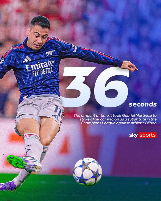 마르티넬리는 17일(한국시간) 스페인 빌바오의 산 마메스에서 열린 아틀레틱 클루브와의 2025~26 유럽축구연맹(UEFA) 챔피언스리그(UCL) 리그 페이즈 1차전서 팀이 0-0으로 맞선 후반 36분 교체 투입, 이후 36초 만에 선제골을 터뜨렸다. 마르티넬리는 종료 전 레안드로 트로사르의 쐐기 골까지 도우며 팀의 2-0 승리를 이끌었다.