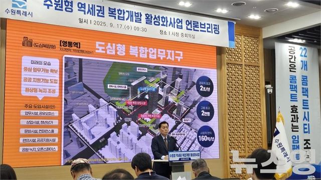 수원시는 17일 브리핑을 열고 ‘수원형 역세권 복합개발 활성화 사업’을 본격 추진한다고 밝혔다. 이번 사업은 민선 8기 핵심 과제로 내세운 ‘수원 대전환’의 공간 혁신 전략 중 하나다.
