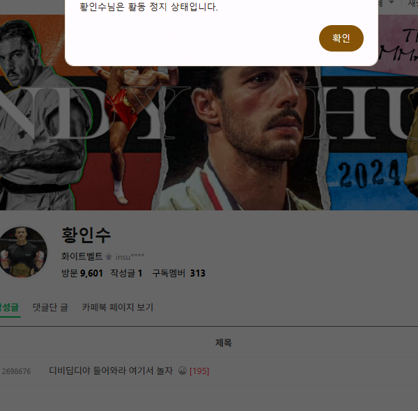 같은시각 황인수는 김동현 저격하다가 키배뜨고 활정