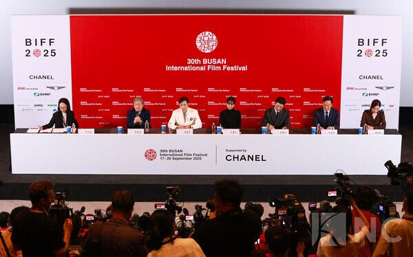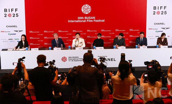 [뉴스컬처 김규빈 기자] 박찬욱 감독과 배우 이병헌, 손예진, 박희순, 염혜란, 이성민이 17일 부산 해운대구 영화의전당 중극장에서 진행된 영화 ‘어쩔수가없다’(감독/각본 박찬욱) 언론시사회 및 기자회견에 참석했다.