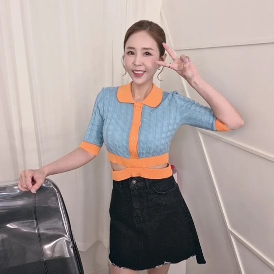 하늘색과 주황 톤이 어우러진 니트에 청치마도 소화하는 신지의 모습은 '예비 신부'미가 풍긴다.