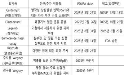 (표)2025년 하반기 주목할 FDA 승인 일정