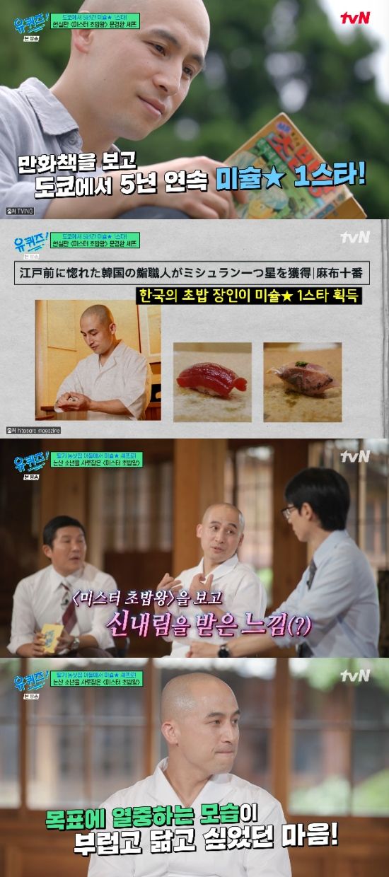 17일 방송된 tvN 예능 프로그램 '유 퀴즈 온 더 블럭'에서는 '미스터 초밥왕' 만화책을 보고 일본 도쿄에서 5년 연속 미슐랭 1스타에 오른 문경환 셰프가 출연해 이야기를 나눴다.