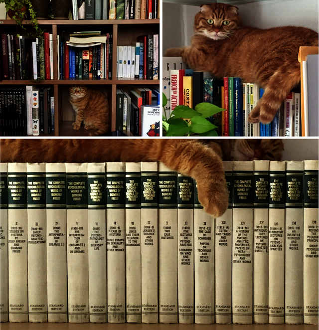 창가 옆 벽에 세운 첫 번째 책꽂이에는 선반별로 외국어 교재, 서류철, 낭만주의 작품과 연구서, 발터 벤야민 관련서, 그 외 각종 인문학 원서, 복사물이 있었다.