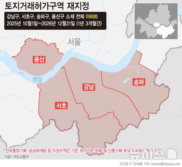 뉴시스 보도에 따르면, 18일 업계에 따르면, 서울시 도시계획위원회는 지난 17일 강남구, 서초구, 송파구, 용산구를 오는 10월1일부터 2026년 12월13일까지 16개월간이다.