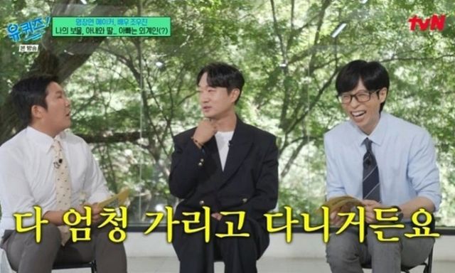그는 “내년 정도에는 딸에게 배우라고 이야기할 생각이다”고 털어놨다. 이에 유재석은 “그냥 방송을 같이 봐라. 집안에서 혼자만 모르는 걸 수도 있다”고 조언했다. 이를 들은 조우진은 “윤종신과 장항준도 똑같이 말해주더라. 내년에 이야기하면 ‘이미 알고 있었다’고 할 거라더라”며 웃었다.