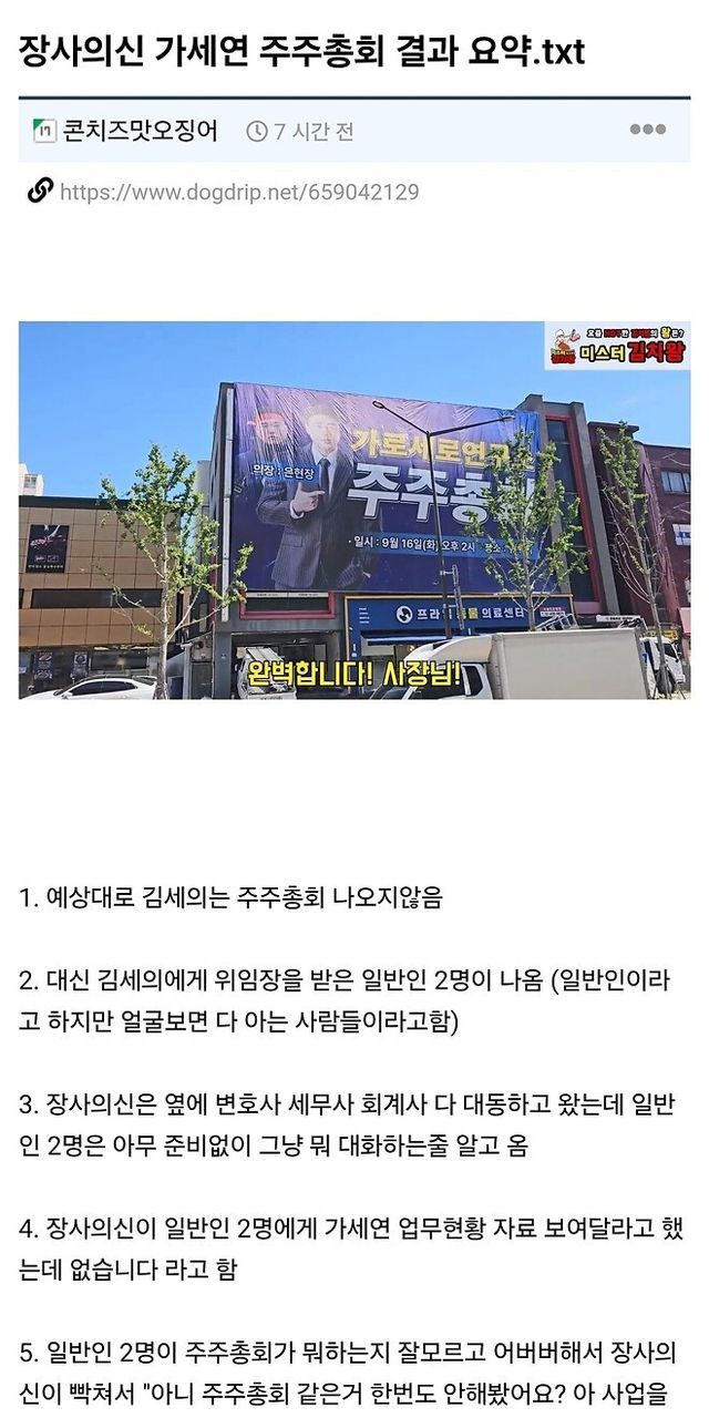 장사의신 가세연 주주총회 결과 요약