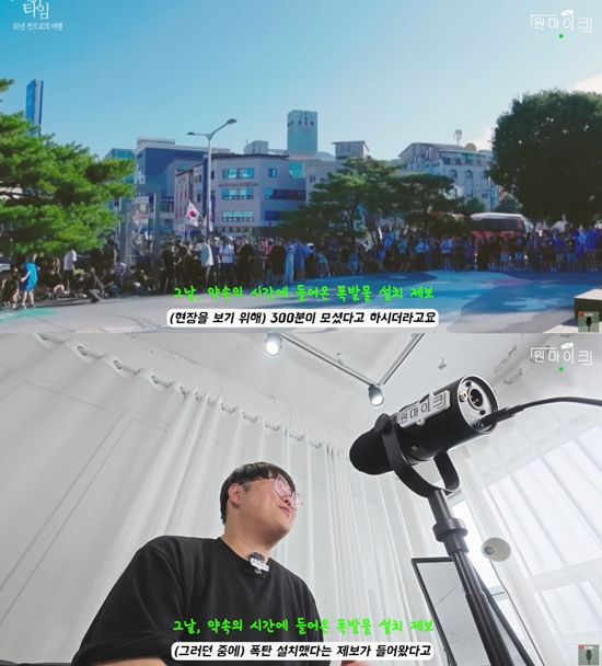 약속의 시간이 된 그날, 이지원 VJ는 "촬영팀은 5시쯤에 집결을 하고 기다렸다. 현장에 300분이 모이셨다고 하더라. 근데 폭탄 설치했다는 제보가 들어왔다. 갑자기 경찰이 오시고 '다 나가시라' 그랬다. 심각했다"고 밝혀 모두에게 안타까움을 전했다.