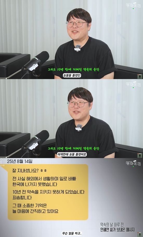 약속을 한 세 명의 사람 중 그 장소로 오지 못한 한 인물, 혜연 씨에 대해서 이지원 VJ는 "해외에서 생활하며 일로 바빠 가지 못해 미안하다고 하더라. 전혀 미안할 일이 아닌데... 기억하는 것만으로도 약속 지키는 건데"라며 고마움을 전했다.