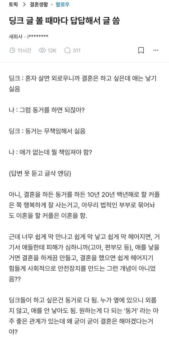 딩크 글 볼때마다 답답하다는 블라인....ㄹㅇ