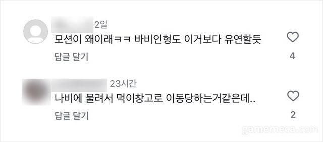 ▲ 캐릭터의 어색한 모션을 지적하는 반응 (자료출처: 엔씨소프트 공식 인스타그램)