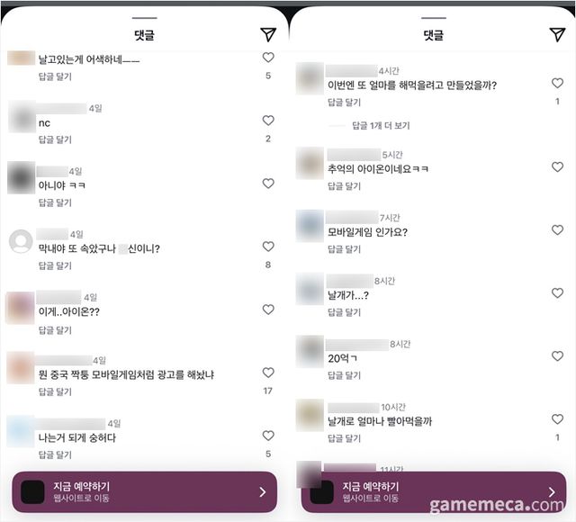 ▲ 날개에 대한 의문을 드러내는 반응 (자료출처: 엔씨소프트 공식 인스타그램)