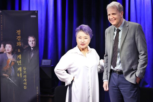 18일 서울 종로구 크레디아클래식클럽에서 열린 ‘정경화&케빈 케너 듀오 리사이틀’ 간담회에서 그는 “케빈과의 호흡이 워낙 좋아 늘 흥미로운 음악이 나온다”며 “건강에만 문제가 없었다면 함께 더 많은 무대를 함께했을 것”이라고 아쉬움을 전했다.