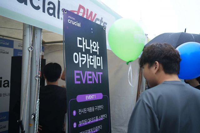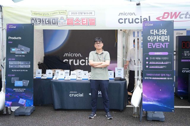 숭실대학교 중앙광장에서 열린 다나와 아카데미 페스티벌 현장에는 글로벌 반도체 기업 마이크론의 소비자 브랜드 크루셜(Crucial) 도 참여했다. 현장에서 만난 권명섭 차장은 자신을 “대원 CTS에서 마이크론 CM을 맡고 있다”고 소개하며, 참여한 이유와 전략적 포인트를 차분히 설명했다.