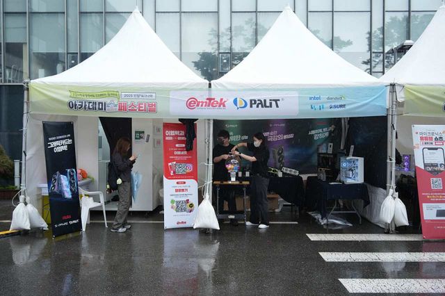 숭실대학교 중앙광장에서 열린 다나와 아카데미 페스티벌. 행사장 한쪽에 이엠텍 부스가 자리했다. 그래픽카드 시장 점유율 1위 유통사로 한국 시장에서 오랜 존재감을 지녀온 이엠텍은 화려한 전시 대신 간결하면서도 의미 있는 제품 구성을 강조했다. 현장에서 만난 신승민 팀장은 “마케팅 전략팀을 맡고 있다”며, “학생들에게 이엠텍이라는 브랜드 자체를 알리고 싶어 이 자리에 섰다”고 소개했다.