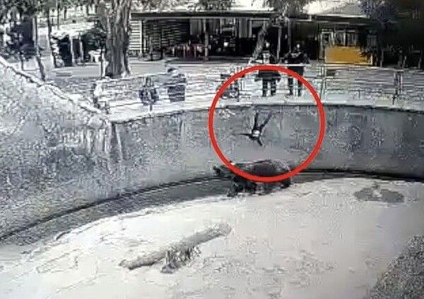 당시 동물원 CCTV에는 아이를 안고 있던 그녀가 곰이 서성이는 5.5m 아래 우리로 딸을 던지는 모습이 찍혔다.