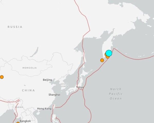 미국지질조사국(USGS)도 캄차카 반도 동부 지역에서 현지시간 19일 새벽 6시 58분에 규모 7.8의 지진이 발생했다고 발표했다.
