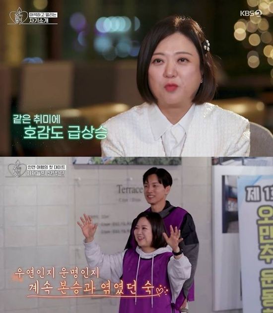 '오만추'는 이영자·황동주뿐 아니라 김숙·구본승이라는 또 다른 핑크빛 조합도 탄생시켰다. 다소 이색적이라 생각할 수 있지만, 두 사람은 '취미'라는 공통분모를 통해 서로에게 호감을 느꼈고 서서히 스며드는 모습으로 묘한 분위기를 자아냈다.