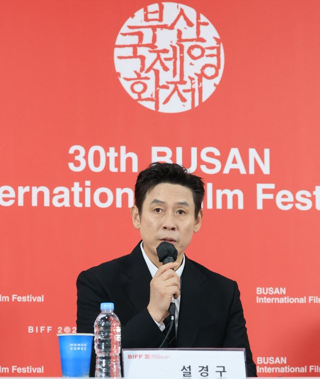 제30회 부산국제영화제(BIFF, 부국제)가 열리는 19일 오전 부산 해운대구 영화의전당 비프힐 1층 기자회견장에서 부국제 갈라 프레젠테이션 부문에 초청된 넷플릭스 영화 ‘굿뉴스’(감독 변성현)의 기자회견이 진행됐다. 이날 기자회견에는 변성현 감독과 배우 설경구, 홍경, 야마다 타카유키, 박가언 수석프로그래머가 참석했다.