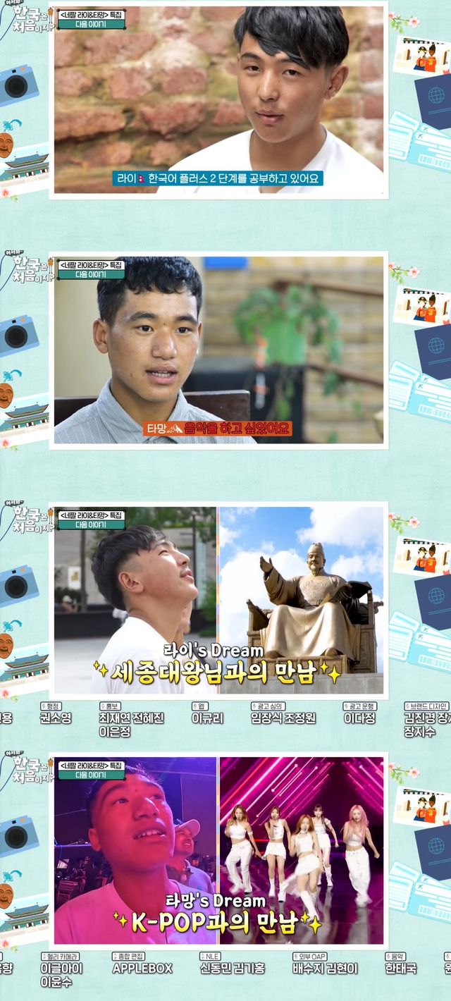 생애 첫 한국 여행에 나선 이들은 한국에서 각자의 꿈에 다가가는 경험을 했다. 세종대왕 동상을 보고 싶었다는 한국어학당 학생 라이는 광화문에 방문해 동상을 보며 "이분이 만든 것들을 봐왔다"며 감격했다. 또 음악에 대한 꿈이 있었던 타망은 "K-POP 엄청 유명하지 않냐"며 음악 방송 현장에 방문해 꿈같은 시간을 즐겼다.