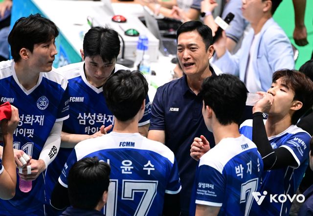 김상우 감독이 이끄는 삼성화재는 19일 전라남도 여수 진남체육관에서 열린 2025 여수·NH농협컵 프로배구대회 남자부 준결승에서 대한항공에 세트스코어 2-3(29-27, 25-19, 23-25, 23-25, 9-15)으로 패배했다.