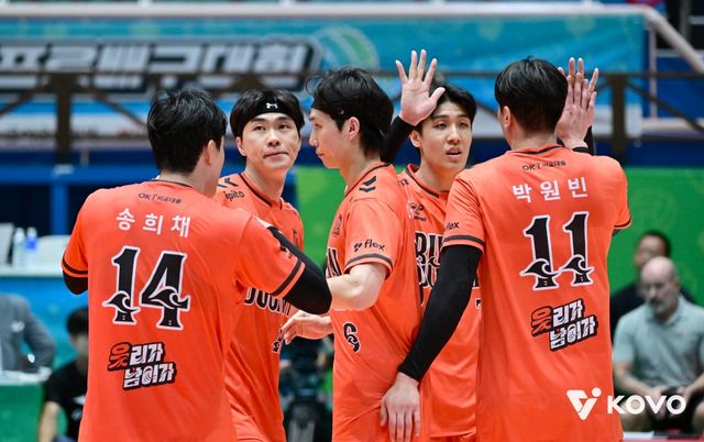 신영철 감독이 이끄는 OK저축은행은 19일 전라남도 여수 진남체육관에서 열린 2025 여수·NH농협컵 프로배구대회 남자부 준결승에서 한국전력을 세트스코어 3-2(25-22, 18-25, 25-16, 15-23, 15-12)로 제압했다.