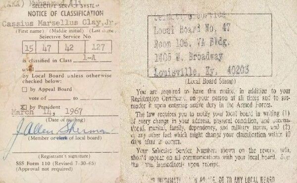 알리의 징집 카드는 켄터키주 루이빌 드래프트 위원회가 그에게 입대를 명령하며 발행한 공식 문서로 지역 징병 위원회 의장이 서명했지만 알리는 이에 서명하지 않았다.