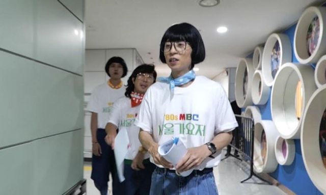 공개된 사진 속에는 일찍 도착해 무대를 점검 중인 유재석 PD와 하하, 주우재, 이이경 작가의 모습이 담겨 있다. 그들은 심혈을 기울여 제작한 80년대 스타일 무대를 살피고, 리허설 현장을 체크하면서 분주하게 움직이고 있다.