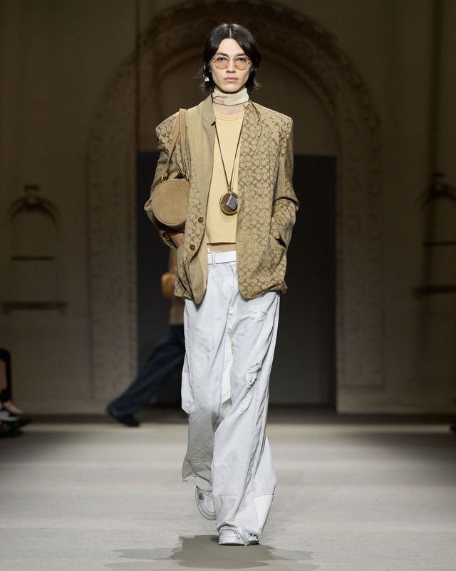 이번 컬렉션의 소재와 색감은 뉴욕이 던져주는 사소한 발견들에서 출발합니다. 인도에 버려진 카드, 전봇대에 붙은 스티커 같은 흔적들은 낡았지만 특별한 기억을 품은 도시의 단면을 상징합니다. 이러한 이미지는 패브릭 위로 옮겨져, 은은하게 바랜 듯한 톤과 광택으로 표현되었습니다. 스웨이드와 가죽은 표면의 질감을 그대로 드러나도록 가공해 시간의 흐름이 만든 깊이를 담았고, 메탈릭 디테일은 새것의 번쩍임이 아니라 오래된 표면에 깃든 빛을 그려냈습니다. 이 같은 시선은 액세서리에서도 이어졌습니다. 작은 봉투, 책, 로켓, 동전 모양의 펜던트는 도시 곳곳에서 발견되는 일상적 오브제를 그대로 옮겨온 듯한 모습으로 등장했죠.