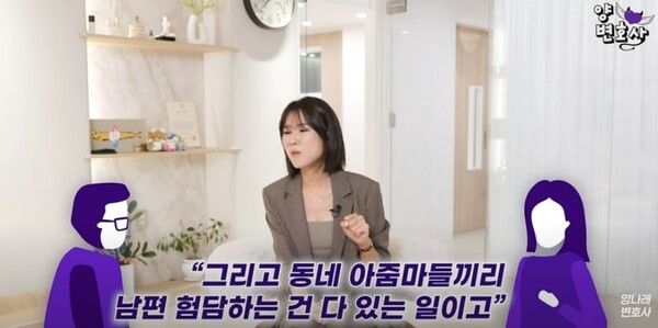 뉴시스 보도에 따르면, 17일 유튜브 채널 '양나래 변호사'에는 "아내가 온라인 커뮤니티에 제 욕을 올렸습니다. 이거 그냥 넘길 수 있는 문제인가요?"라는 제목의 영상이 올라왔다.