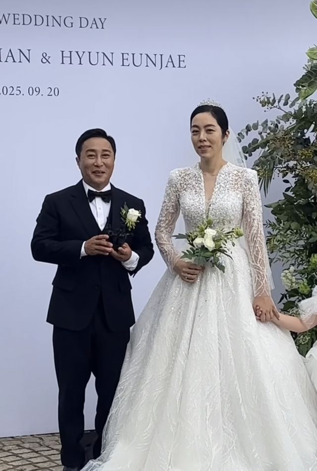 또 웨딩드레스 업체 SNS를 통해 예식에 앞서 포토월에 선 이날 주인공들의 모습이 공개됐다. 업체가 올린 영상에는 나비넥타이에 턱시도를 입은 신랑 김병만과 순백의 웨딩드레스를 입은 신부 현씨를 비롯해, 두 사람의 자녀들이 자유롭게 노니는 모습도 담겨 눈길을 끌었다. 그 중에서도 현씨는 시원시원한 외모와 몸매로 단연 시선을 사로잡았다.