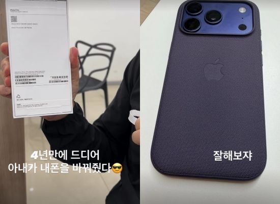 진태현은 20일 자신의 개인 계정에 "4년 만에 드디어 아내가 내 폰을 바꿔줬다. 잘해보쟈"라는 멘트와 함께 새로 나온 애플 아이폰17 프로 사진을 공개했다.