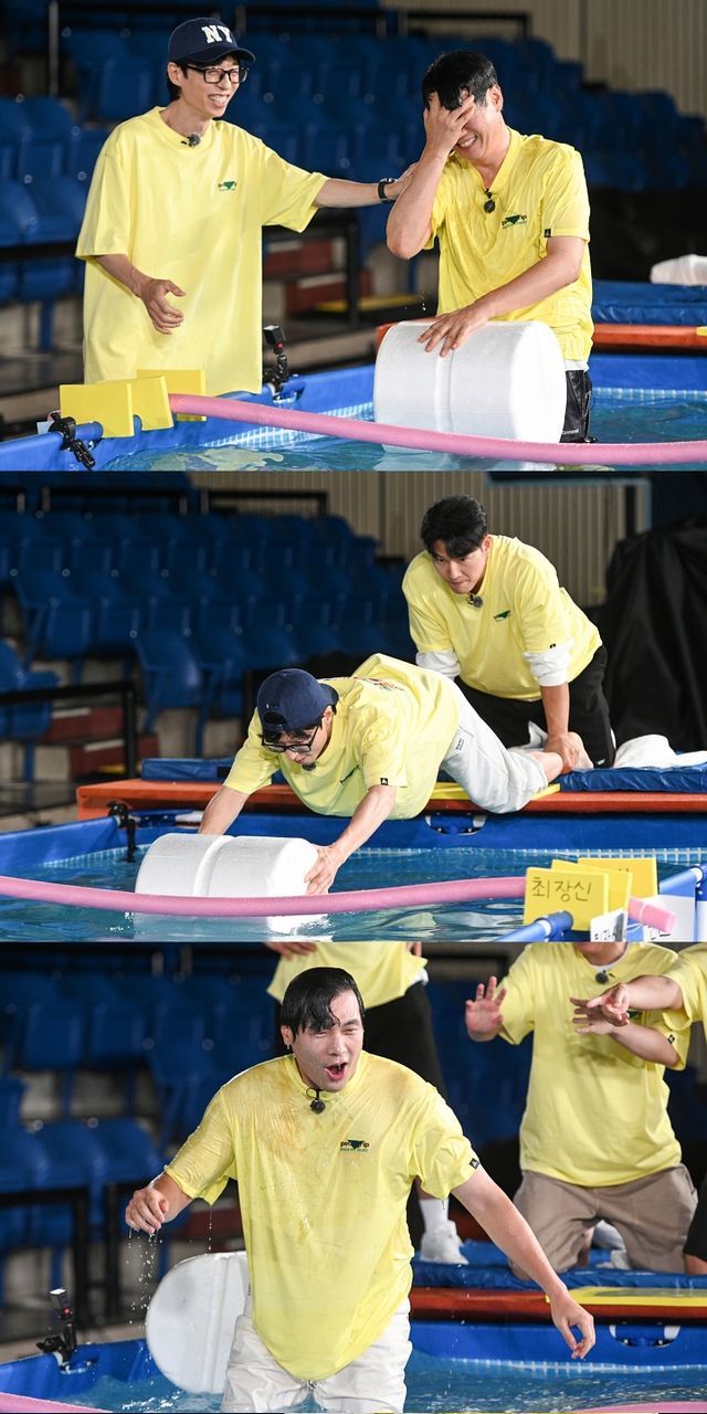 한편, 물에 쫄딱 젖은 멤버들의 눈앞에 드디어 김종국을 위한 결혼 축하 파티장이 최종 공개된다. 과연 김종국은 몇 개의 항목을 제거하는 데에 성공했을지, 유독 싫어하던 장치들을 피할 수 있을지 관심이 집중된다.