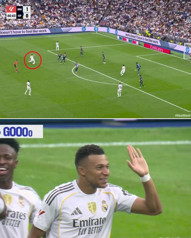 레알이 1-0으로 앞선 채 맞이한 후반전, 음바페가 시작과 동시에 아쉬움을 털었다. 음바페는 후반 2분 비니시우스로부터 공을 건네받은 뒤 박스 왼쪽에서 과감한 감아차기 슈팅으로 에스파뇰의 골망을 흔들었다. 공은 바깥쪽이 아닌 니어포스트로 절묘하게 감겨 들어갔다. 에스파뇰 수비진이 제대로 반응할 수 없는 궤적이었다.