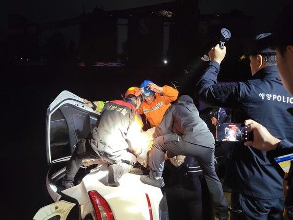 현장에 도착한 해안순찰팀과 동해해양특수구조대는 소방과의 협조 아래 차량 내부를 신속히 확인하고, 탑승자 전원을 안전하게 구조했다.
