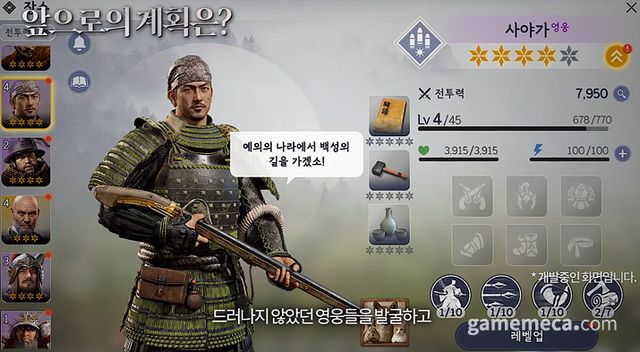 게임에는 권율, 이순신, 사명대사 등 조선측 장수뿐만 아니라 사야가, 고니시 유키나가 등 일본 측 장수들도 등장한다. 또한 다수의 병력과 함께 성을 공격하고 빼앗는 공성전 형태의 콘텐츠, 함정과 해자를 흙으로 메우고 성을 공략하는 전략 요소, 아이템을 제작하거나 습득하고 보상을 얻는 임무 등이 더해질 것으로 보인다.