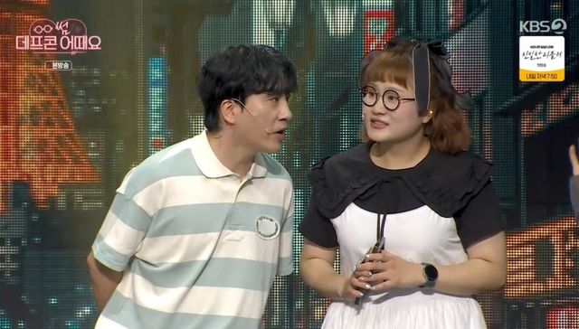 이어 ‘데프콘 썸 어때요’ 코너에서 조수연과 신윤승은 일본 여행을 떠났다. 조수연은 “우리 이렇게 신혼여행 와서 좋다”라고 했지만, 신윤승은 “우리 사귀지도 않는다”라고 밝혔다. 엄마에게 전화한 조수연이 “아기 만들어서 갈게. 신 서방 바꿔 달라고?”라며 바꿔주자 신윤승은 “어머니, 법정에서 뵙겠습니다”라고 밝혔다.