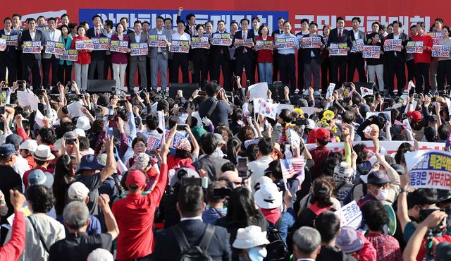 국민의힘이 21일 '보수의 심장'으로 불리는 대구에서 5년 8개월 만에 대규모 장외집회를 열고 정부·여당을 강도 높게 비판했다. 황교안 전 국무총리가 국민의힘 전신인 자유한국당 대표였던 2020년 1월 광화문광장 집회 이후 6년 만에 다시 거리로 나선 것이다.